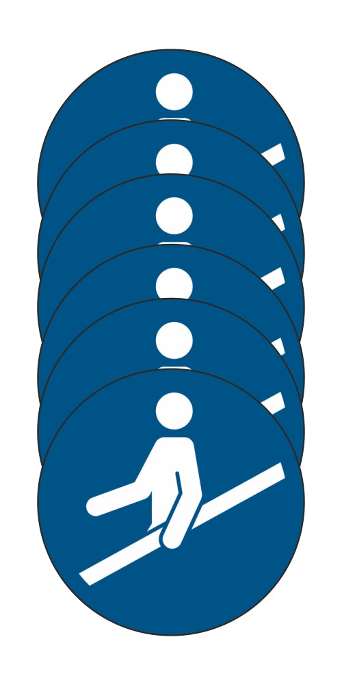 GLOBAL KIT DI 6 ADESIVI ROTONDI - usare il corrimano - Pittogramma ISO 7010 Con Stampa Diretta U.V. (IDEALE ANCHE PER ESTERNO)