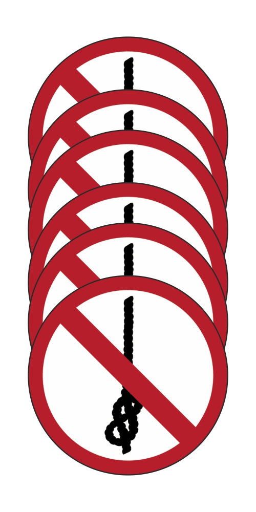 GLOBAL KIT DI 6 ADESIVI ROTONDI - Vietato annodare la corda - Pittogramma ISO 7010 Con Stampa Diretta U.V. (IDEALE ANCHE PER ESTERNO)