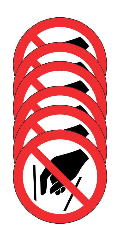 GLOBAL KIT DI 6 ADESIVI ROTONDI - VIETATO INTRODURRE LE MANI - Pittogramma ISO 7010 Con Stampa Diretta U.V. (IDEALE ANCHE PER ESTERNO)