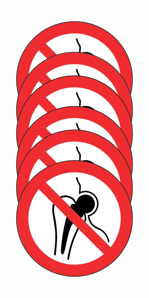 GLOBAL KIT DI 6 ADESIVI ROTONDI - VIETATO L'ACCESSO AI PORTATORI DI PROTESI METALLICHE - Pittogramma ISO 7010 Con Stampa Diretta U.V. (IDEALE ANCHE PER ESTERNO)