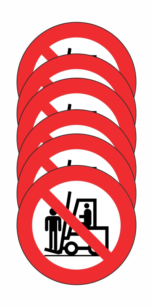 GLOBAL KIT DI 6 ADESIVI ROTONDI - VIETATO SOLLEVARE E TRASPORTARE PERSONE - Pittogramma ISO 7010 Con Stampa Diretta U.V. (IDEALE ANCHE PER ESTERNO)