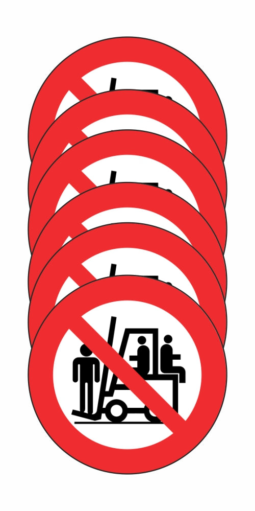 GLOBAL KIT DI 6 ADESIVI ROTONDI - VIETATO TRASPORTARE E SOLLEVARE PERSONE - Pittogramma ISO 7010 Con Stampa Diretta U.V. (IDEALE ANCHE PER ESTERNO)