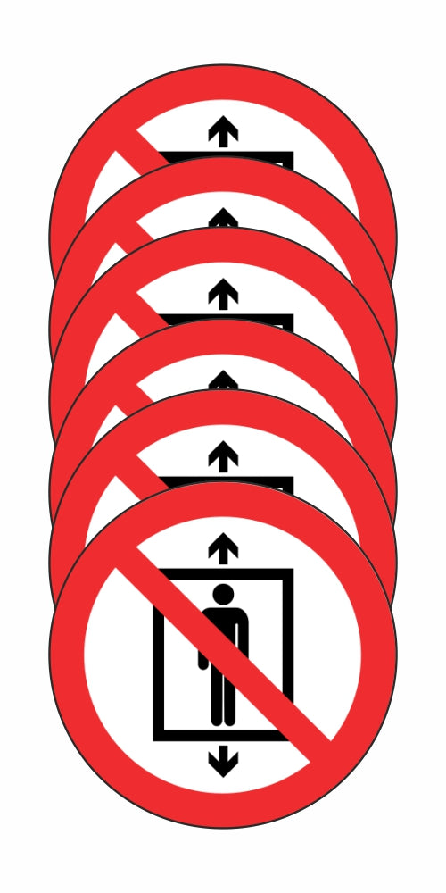 GLOBAL KIT DI 6 ADESIVI ROTONDI - VIETATO UTILIZZARE IL MONTACARICHI - Pittogramma ISO 7010 Con Stampa Diretta U.V. (IDEALE ANCHE PER ESTERNO)