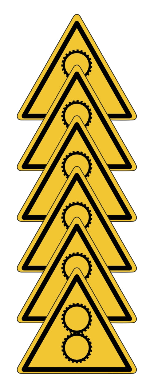 GLOBAL KIT DI 6 ADESIVI TRIANGOLARI - INGRANAGGI - Pittogramma ISO 7010 Con Stampa Diretta U.V. (IDEALE ANCHE PER ESTERNO)