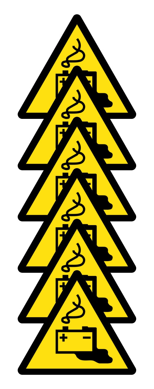GLOBAL KIT DI 6 ADESIVI TRIANGOLARI - PERICOLO ACCUMULATORI - Pittogramma ISO 7010 Con Stampa Diretta U.V. (IDEALE ANCHE PER ESTERNO)
