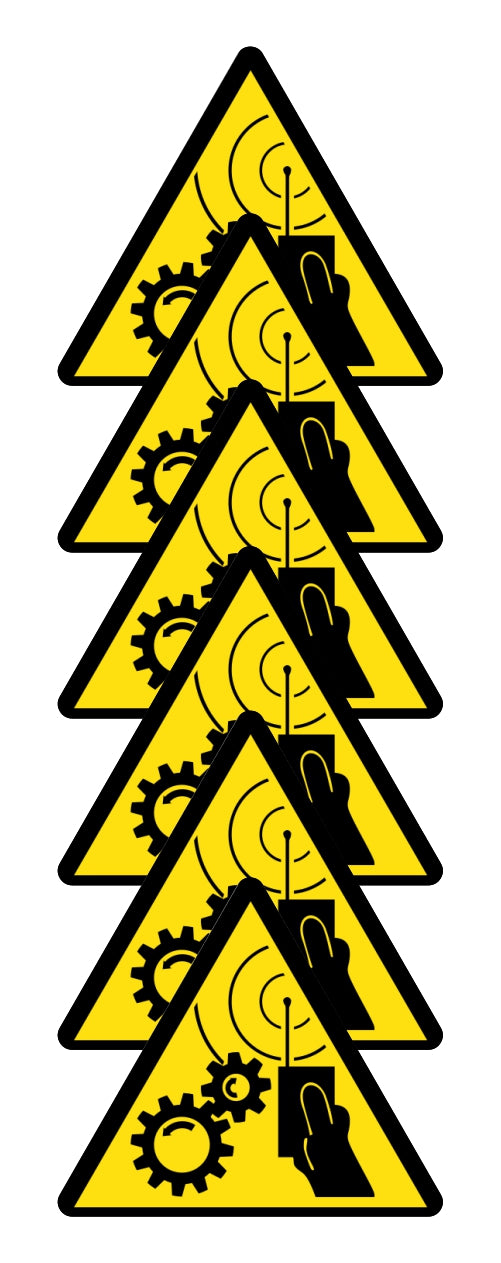 GLOBAL KIT DI 6 ADESIVI TRIANGOLARI - PERICOLO AVVIAMENTO AUTOMATICO CON COMANDO A DISTANZA - Pittogramma ISO 7010 Con Stampa Diretta U.V. (IDEALE ANCHE PER ESTERNO)