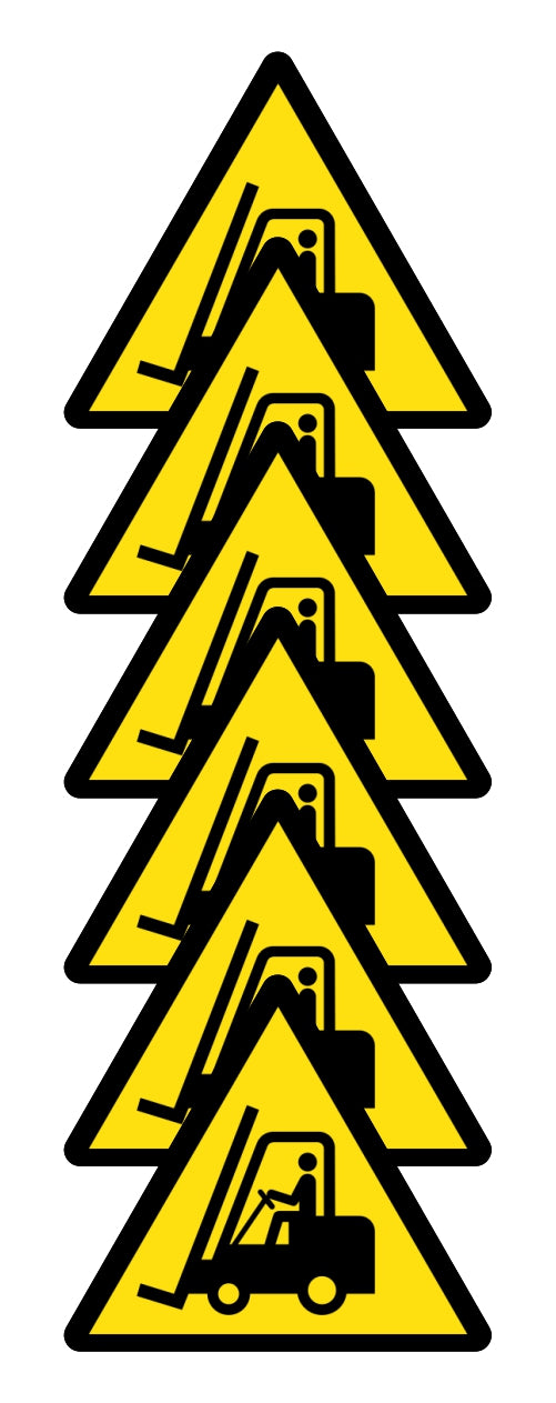 GLOBAL KIT DI 6 ADESIVI TRIANGOLARI - PERICOLO CARRELLI ELEVATORI - Pittogramma ISO 7010 Con Stampa Diretta U.V. (IDEALE ANCHE PER ESTERNO)