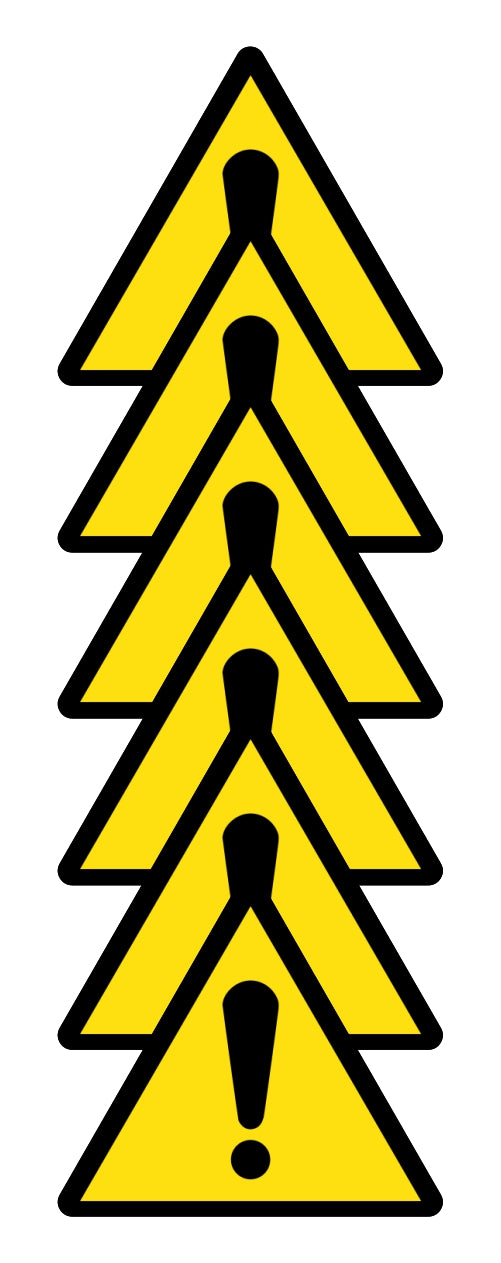GLOBAL KIT DI 6 ADESIVI TRIANGOLARI - PERICOLO GENERICO - Pittogramma ISO 7010 Con Stampa Diretta U.V. (IDEALE ANCHE PER ESTERNO)