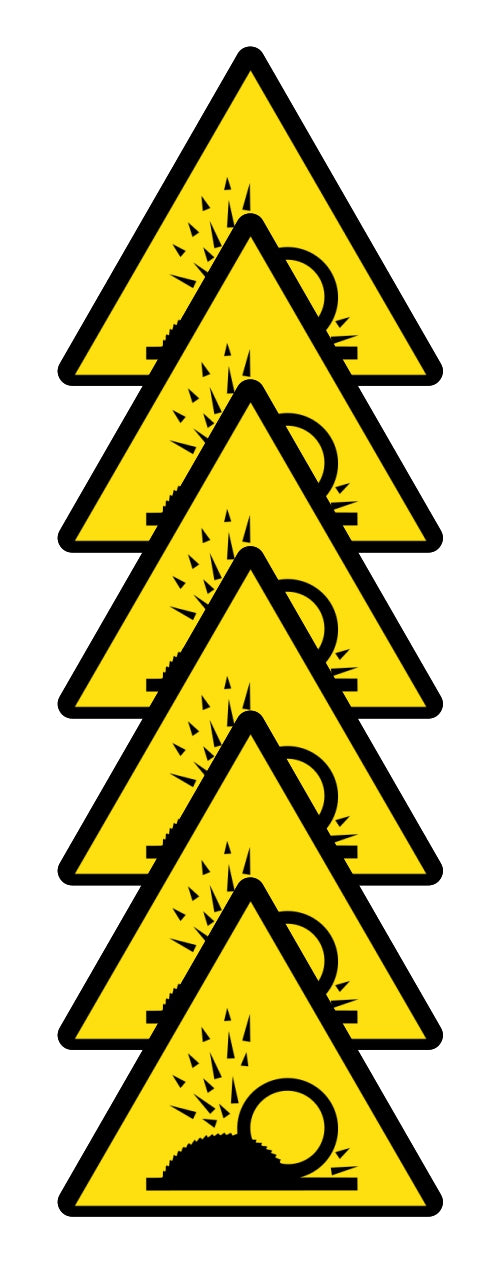 GLOBAL KIT DI 6 ADESIVI TRIANGOLARI - PERICOLO PROIEZIONI SCHEGGE - Pittogramma ISO 7010 Con Stampa Diretta U.V. (IDEALE ANCHE PER ESTERNO)