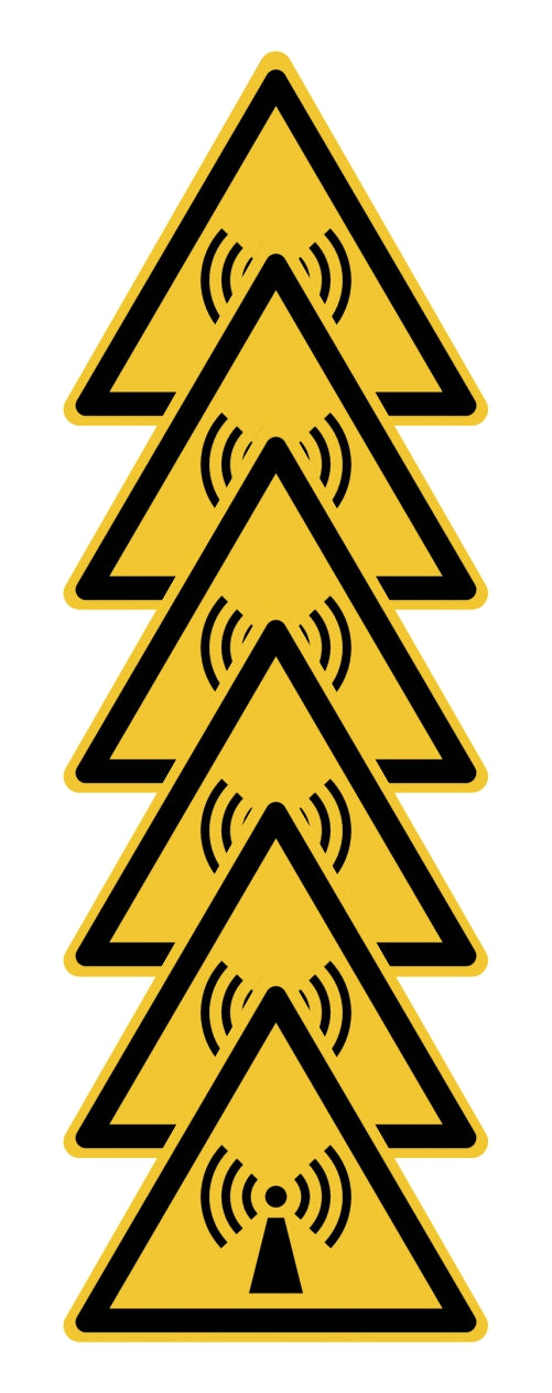 GLOBAL KIT DI 6 ADESIVI TRIANGOLARI - Pericolo radiazioni non ionizzanti - Pittogramma ISO 7010 Con Stampa Diretta U.V. (IDEALE ANCHE PER ESTERNO)