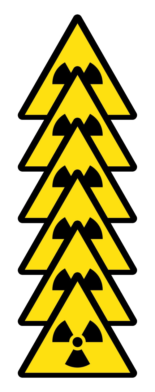 GLOBAL KIT DI 6 ADESIVI TRIANGOLARI - PERICOLO RADIAZIONI - Pittogramma ISO 7010 Con Stampa Diretta U.V. (IDEALE ANCHE PER ESTERNO)