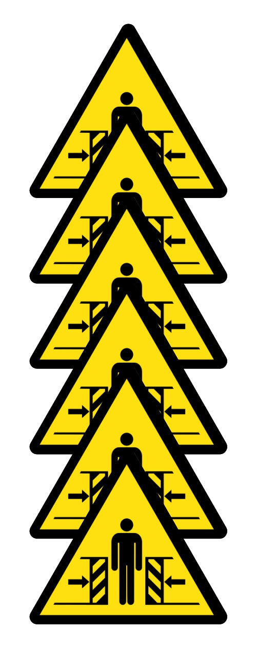 GLOBAL KIT DI 6 ADESIVI TRIANGOLARI - PERICOLO SCHIACCIAMENTO - Pittogramma ISO 7010 Con Stampa Diretta U.V. (IDEALE ANCHE PER ESTERNO)