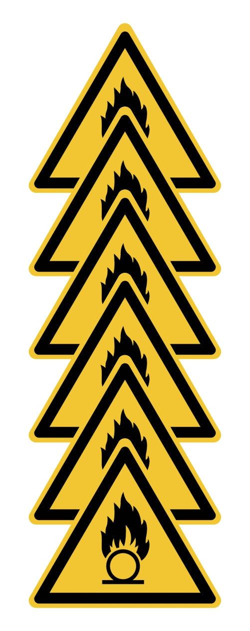 GLOBAL KIT DI 6 ADESIVI TRIANGOLARI - Pericolo sostanze comburenti - Pittogramma ISO 7010 Con Stampa Diretta U.V. (IDEALE ANCHE PER ESTERNO)