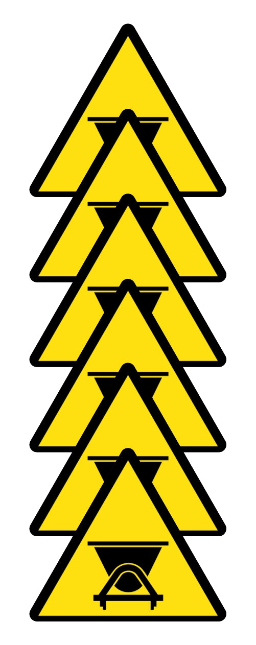 GLOBAL KIT DI 6 ADESIVI TRIANGOLARI - PERICOLO VEICOLI SU ROTAIA - Pittogramma ISO 7010 Con Stampa Diretta U.V. (IDEALE ANCHE PER ESTERNO)