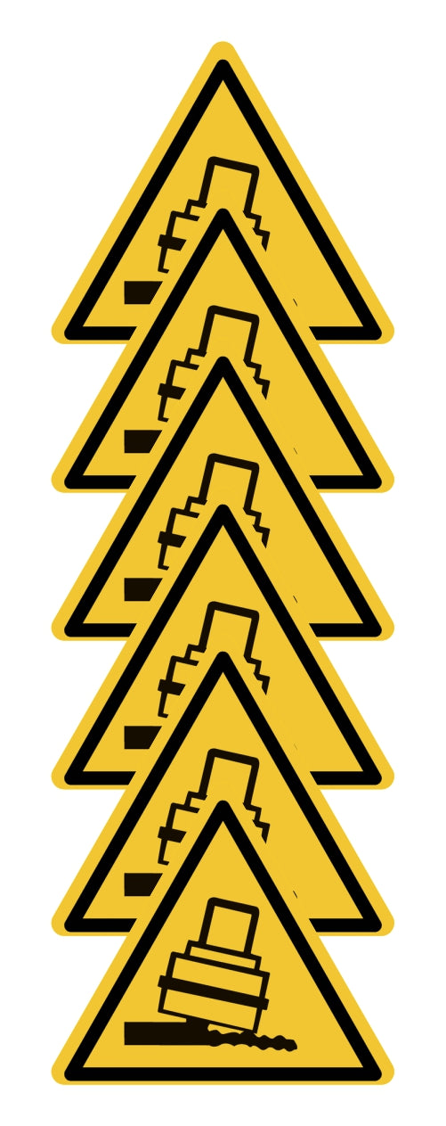 GLOBAL KIT DI 6 ADESIVI TRIANGOLARI - Rischio di ribaltamento - Pittogramma ISO 7010 Con Stampa Diretta U.V. (IDEALE ANCHE PER ESTERNO)