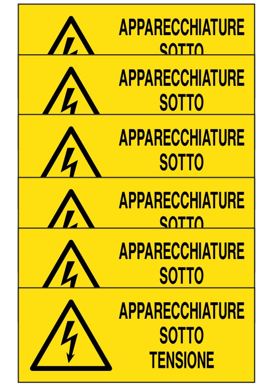 GLOBAL KIT DI 6 ADESIVI UNI - apparecchiature sotto tensione - Pittogramma ISO 7010 Con Stampa Diretta U.V. (IDEALE ANCHE PER ESTERNO)