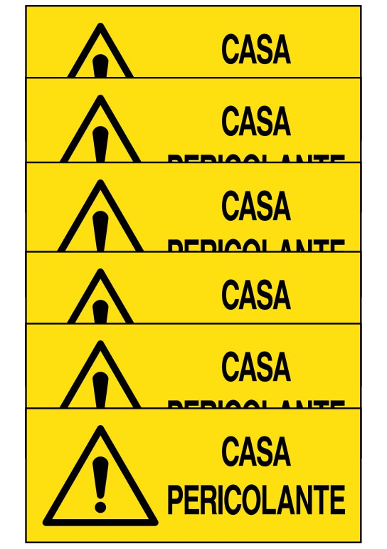 GLOBAL KIT DI 6 ADESIVI UNI - CASA PERICOLANTE - Pittogramma ISO 7010 Con Stampa Diretta U.V. (IDEALE ANCHE PER ESTERNO)