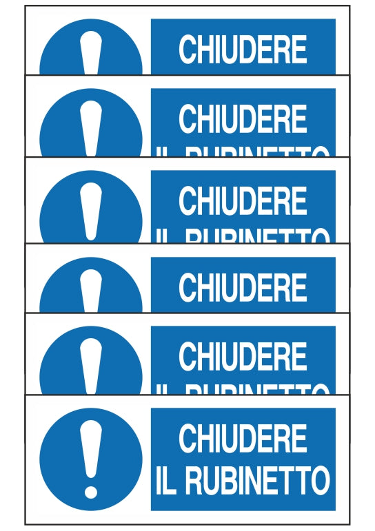 GLOBAL KIT DI 6 ADESIVI UNI - CHIUDERE IL RUBINETTO - Pittogramma ISO 7010 Con Stampa Diretta U.V. (IDEALE ANCHE PER ESTERNO)