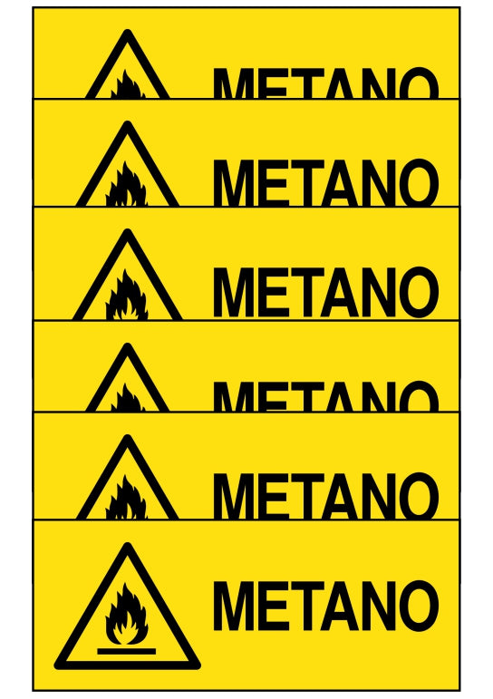 GLOBAL KIT DI 6 ADESIVI UNI - metano - Pittogramma ISO 7010 Con Stampa Diretta U.V. (IDEALE ANCHE PER ESTERNO)