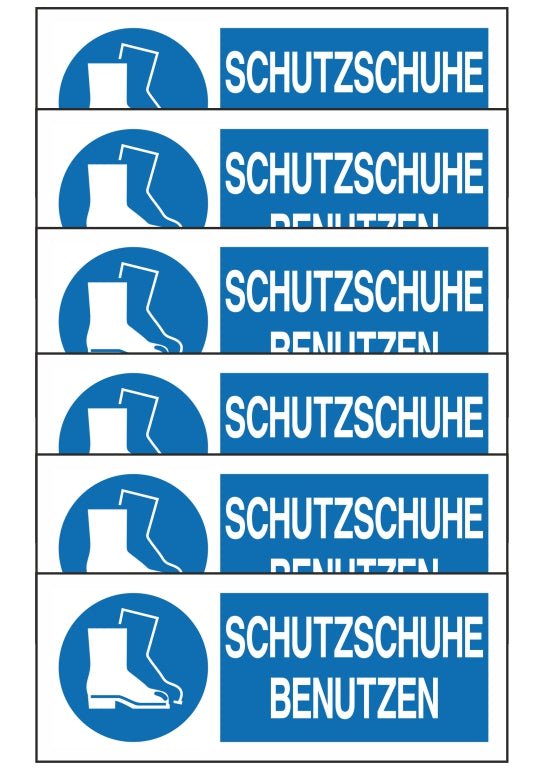 GLOBAL KIT DI 6 ADESIVI UNI - SCHUTZSCHUHE BENUTZEN - Pittogramma ISO 7010 Con Stampa Diretta U.V. (IDEALE ANCHE PER ESTERNO)
