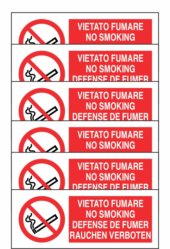 GLOBAL KIT DI 6 ADESIVI UNI - VIETATO FUMARE - 4 lingue - Pittogramma ISO 7010 Con Stampa Diretta U.V. (IDEALE ANCHE PER ESTERNO)
