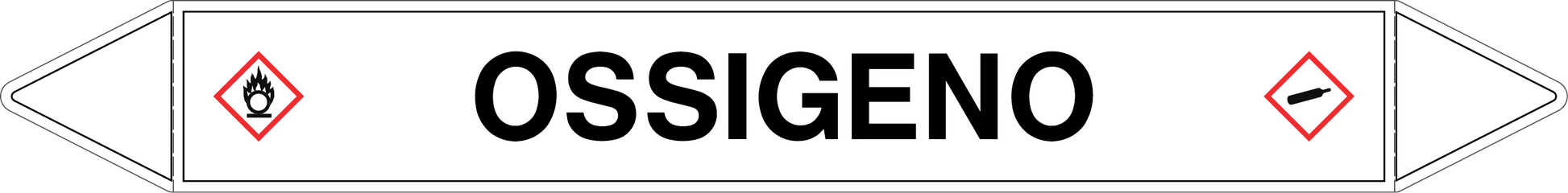 GLOBAL PACCO DA 10 ETICHETTE PER TUBAZIONI - OSSIGENO - Etichetta Autoadesiva Resistente