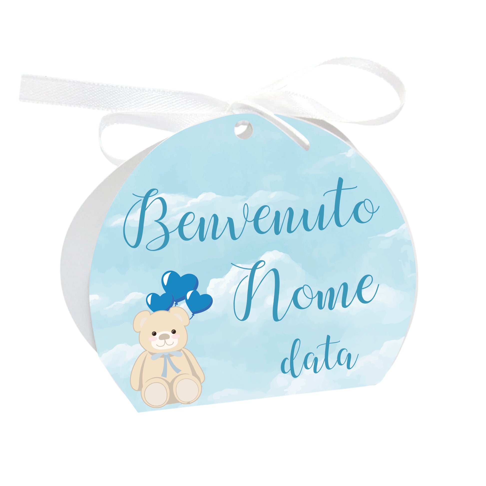 GLOBAL Scatole Portaconfetti per Nascita Personalizzate - ORSETTO BIMBO - Scatoline Bomboniere nascita con nastrino personalizzato MADE IN ITALY