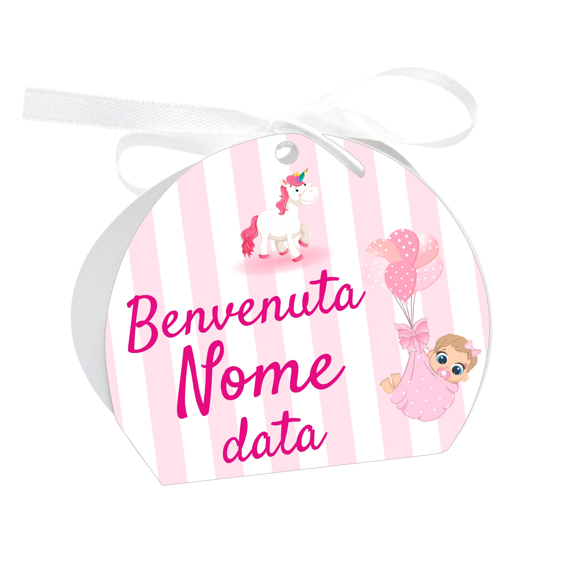 GLOBAL Scatole Portaconfetti per Nascita Personalizzate - UNICORNO E PALLONCINI BIMBA - Scatoline Bomboniere nascita con nastrino personalizzato MADE IN ITALY