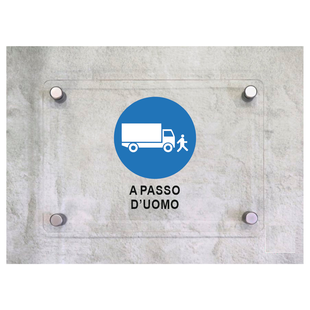 Global Targa Cartello in plexiglass - A PASSO D'UOMO - Con Distanziali in acciaio inox, Stampa UV.