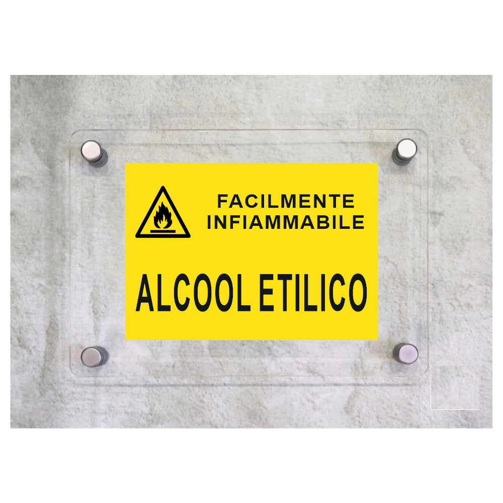 Global Targa Cartello in plexiglass - ALCOOL ETILICO RETTANGOLARE - Con Distanziali in acciaio inox, Stampa UV