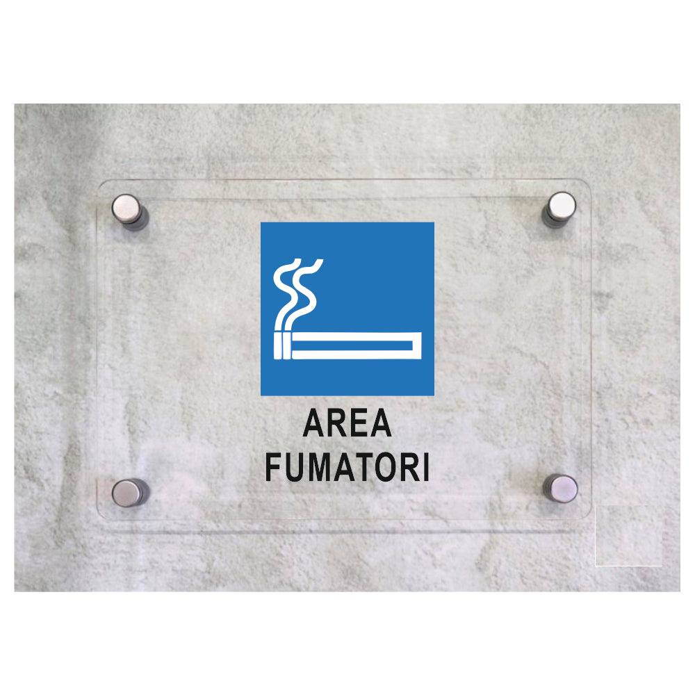 Global Targa Cartello in plexiglass - AREA FUMATORI - Con Distanziali in acciaio inox, Stampa UV.