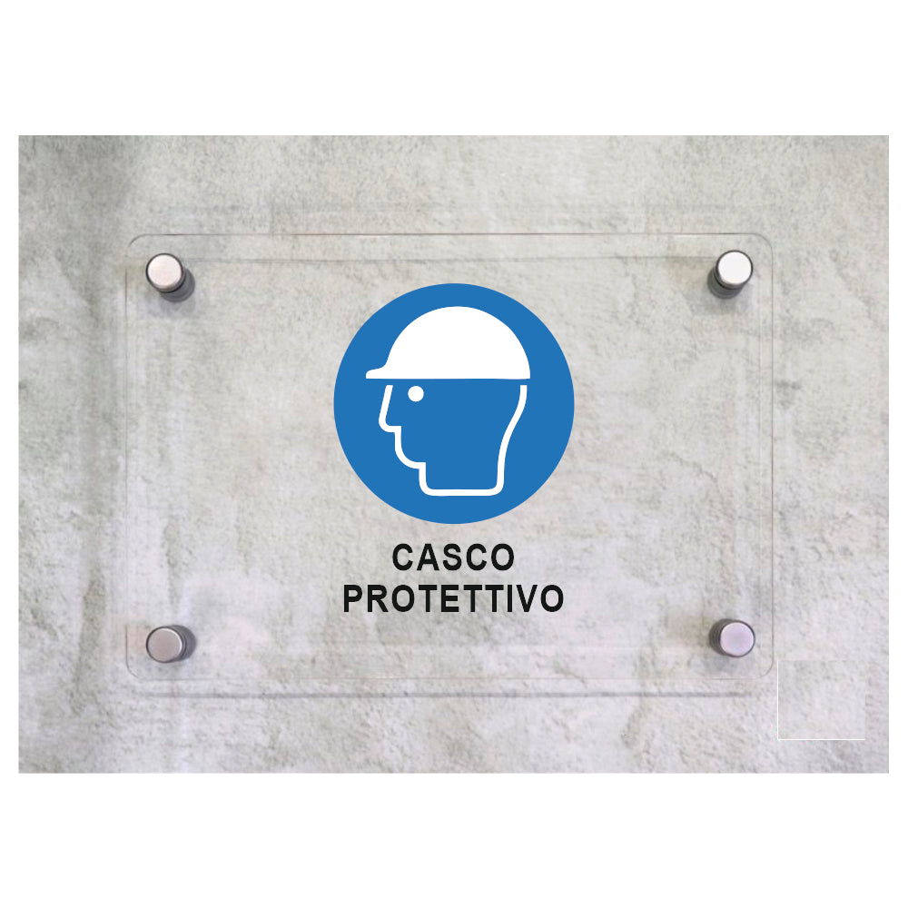 Global Targa Cartello in plexiglass - CASCO PROTETTIVO - Con Distanziali in acciaio inox, Stampa UV.