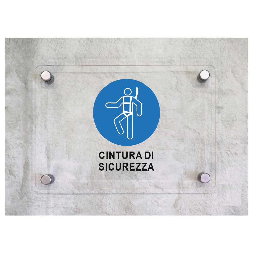 Global Targa Cartello in plexiglass - CINTURA DI SICUREZZA - Con Distanziali in acciaio inox, Stampa UV.