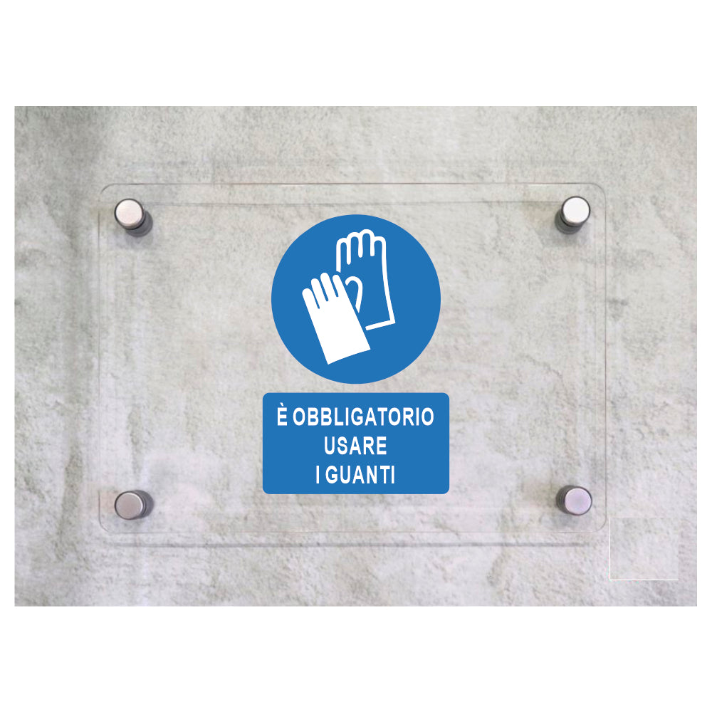 Global Targa Cartello in plexiglass - E' OBBLIGATORIO USARE I GUANTI - Con Distanziali in acciaio inox, Stampa UV.