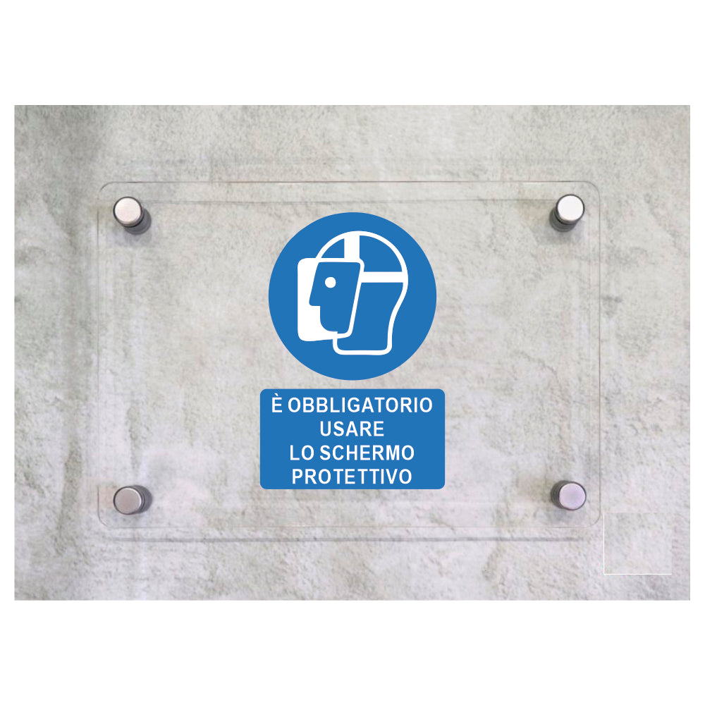 Global Targa Cartello in plexiglass - E' OBBLIGATORIO USARE LO SCHERMO PROTETTIVO - Con Distanziali in acciaio inox, Stampa UV.