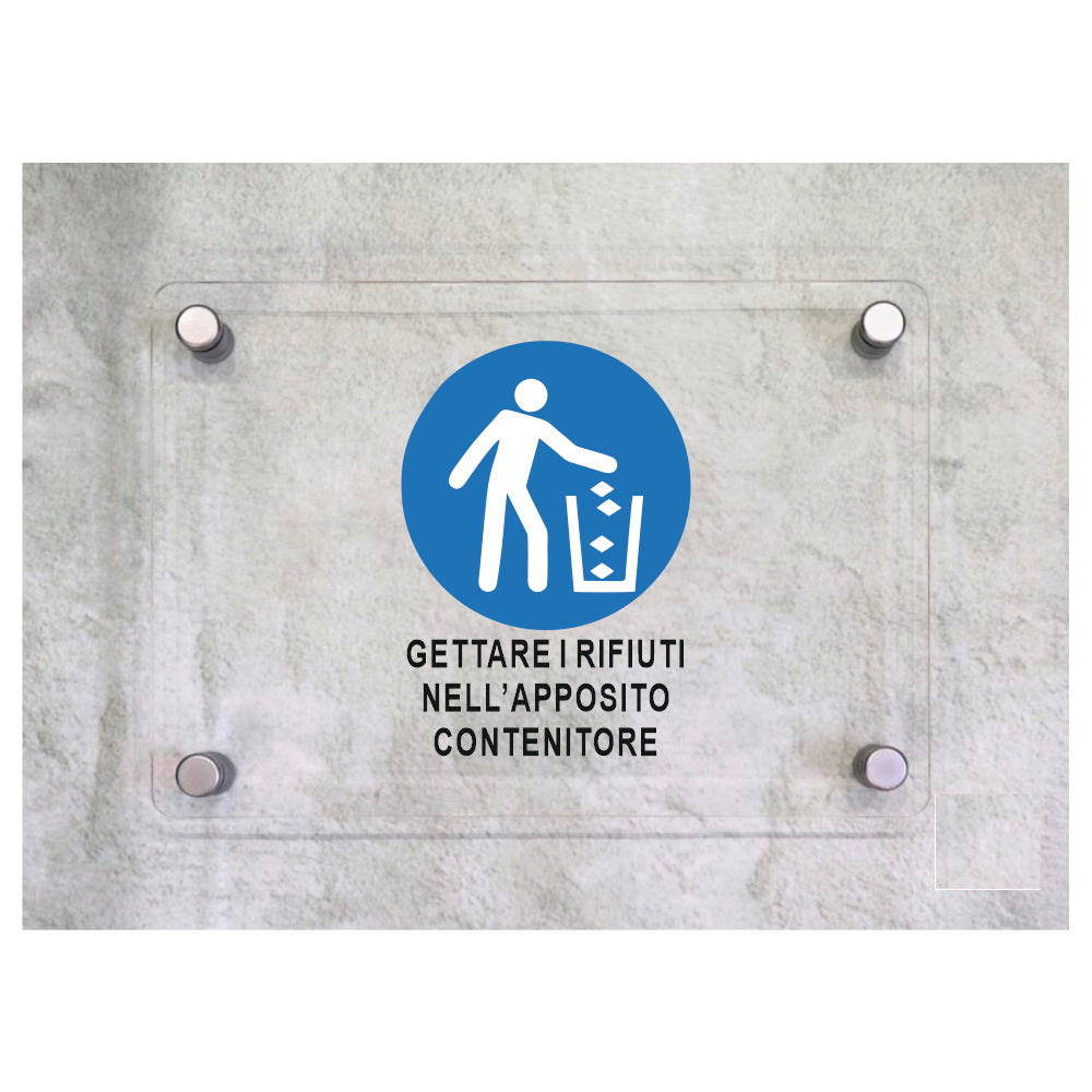 Global Targa Cartello in plexiglass - GETTARE I RIFIUTI NELL'APPOSITO CONTENITORE - Con Distanziali in acciaio inox, Stampa UV.