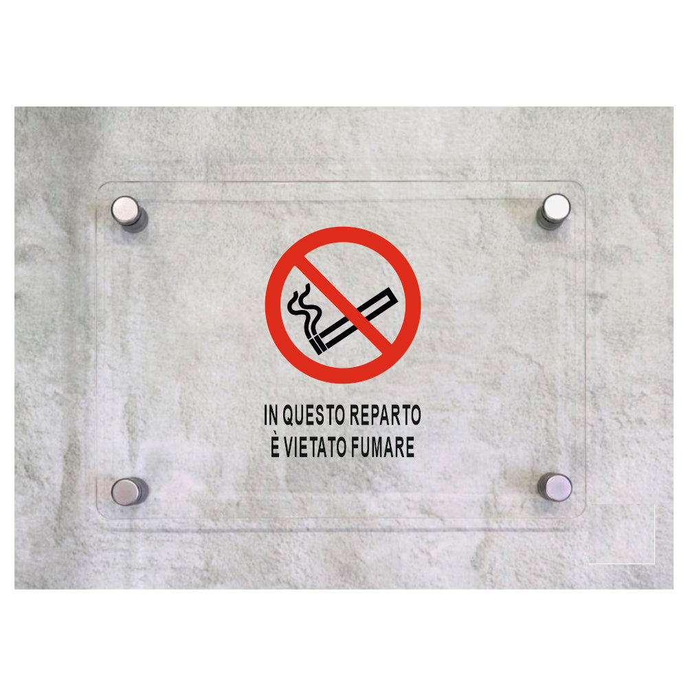 Global Targa Cartello in plexiglass - IN QUESTO REPARTO E' VIETATO FUMARE MOD 2 VERTICALE - Con Distanziali in acciaio inox, Stampa UV