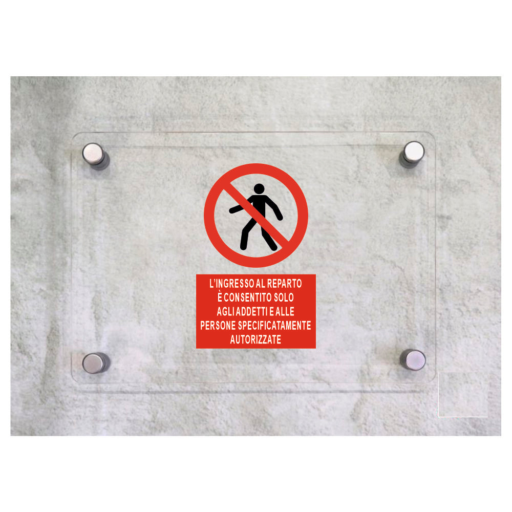 Global Targa Cartello in plexiglass - L'INGRESSO AL REPARTO E' CONSENTITO SOLO AGLI ADDETTI VERTICALE - Con Distanziali in acciaio inox, Stampa UV