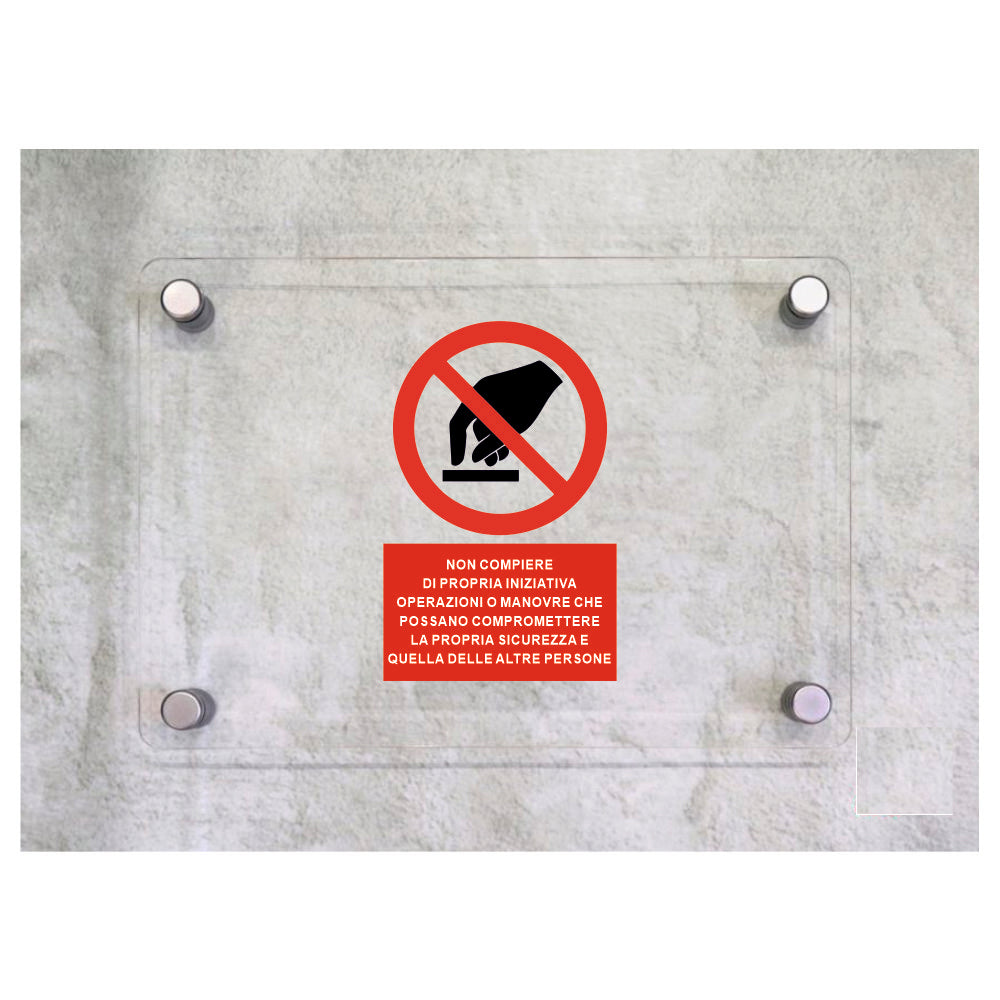 Global Targa Cartello in plexiglass - NON COMPIERE DI PROPRIA INIZIATIVA OPERAZIONI OPERAZIONI O MANOVRE VERTICALE - Con Distanziali in acciaio inox, Stampa UV