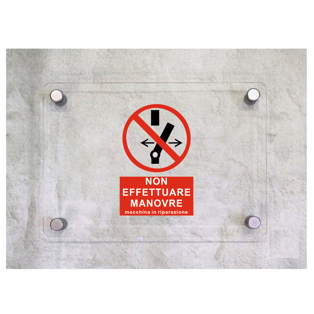 Global Targa Cartello in plexiglass - NON EFFETTUARE MANOVRE, MACCHINA IN RIPARAZIONE VERTICALE - Con Distanziali in acciaio inox, Stampa UV