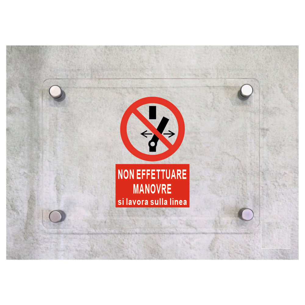 Global Targa Cartello in plexiglass - NON EFFETTUARE MANOVRE SI LAVORA SULLA LINEA VERTICALE - Con Distanziali in acciaio inox, Stampa UV