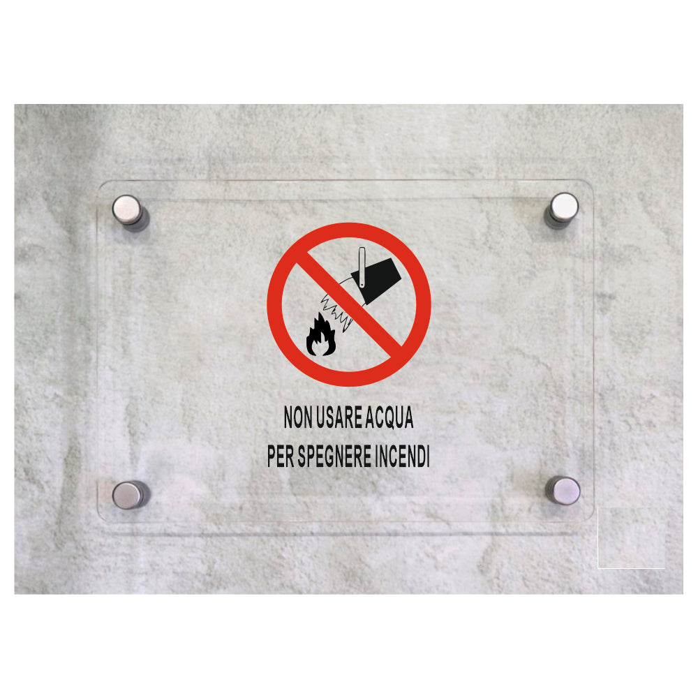 Global Targa Cartello in plexiglass - NON USARE ACQUA PER SPEGNERE INCENDI VERTICALE - Con Distanziali in acciaio inox, Stampa UV