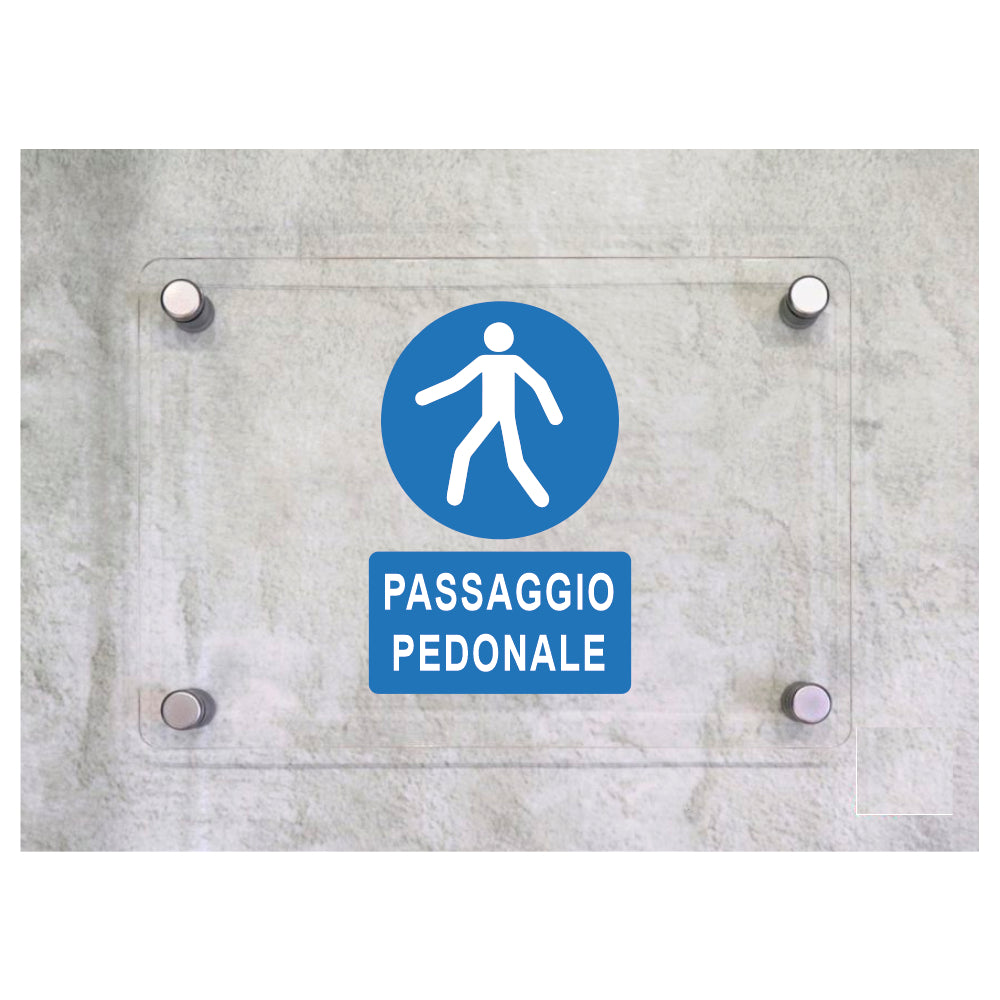 Global Targa Cartello in plexiglass - PASSAGGIO PEDONALE - Con Distanziali in acciaio inox, Stampa UV.