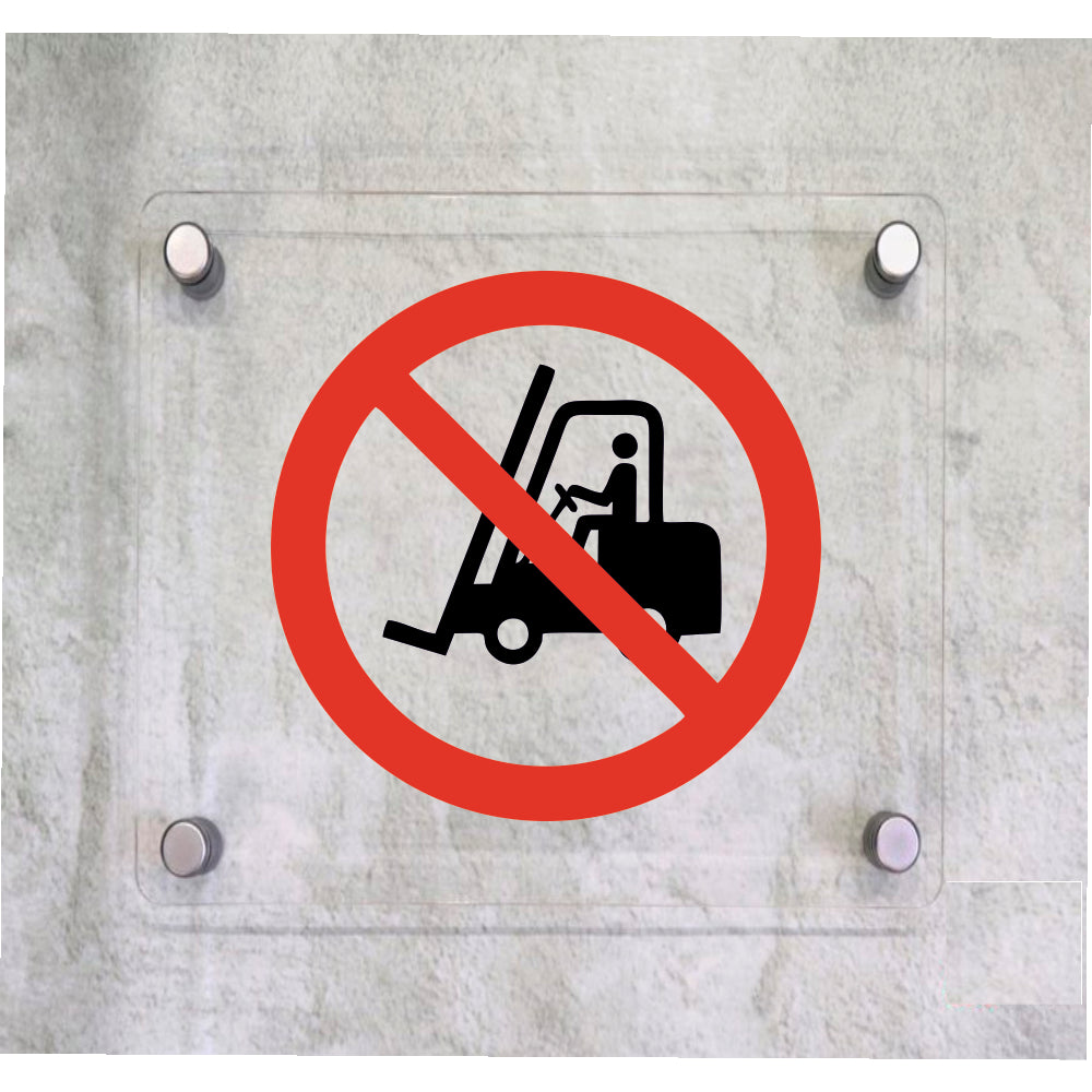 Global Targa Cartello in plexiglass Quadrato - DIVIETO DI TRANSITO PER CARRELLI ELEVATORI - Con Distanziali in acciaio inox, Stampa UV