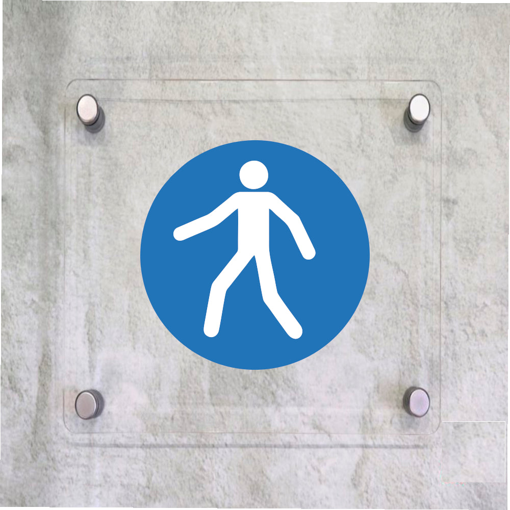 Global Targa Cartello in plexiglass Quadrato - PASSAGGIO OBBLIGATORIO PER I PEDONI - Con Distanziali in acciaio inox, Stampa UV