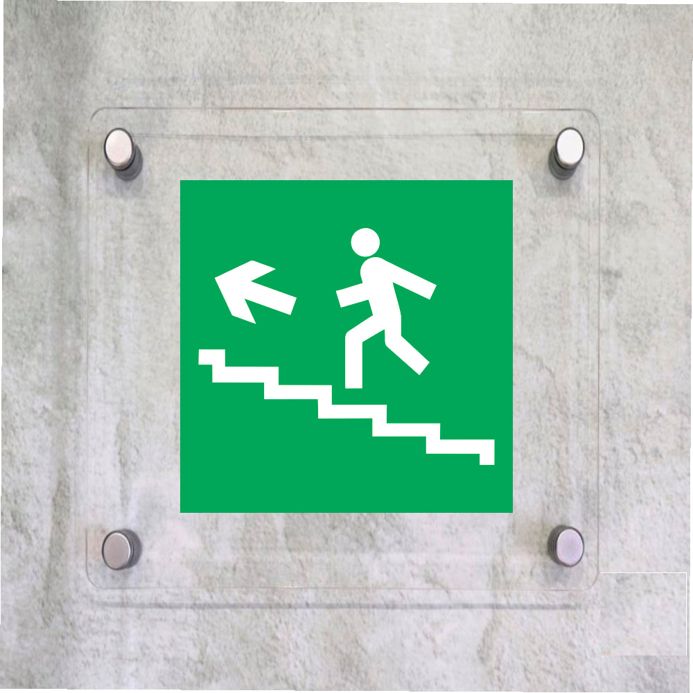 Global Targa Cartello in plexiglass Quadrato - SCALA EMERGENZA SALITA SINISTRA - Con Distanziali in acciaio inox, Stampa UV