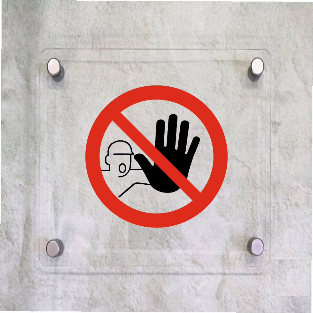 Global Targa Cartello in plexiglass Quadrato - SIMBOLO DIVIETO DI ACCESSO - Con Distanziali in acciaio inox, Stampa UV