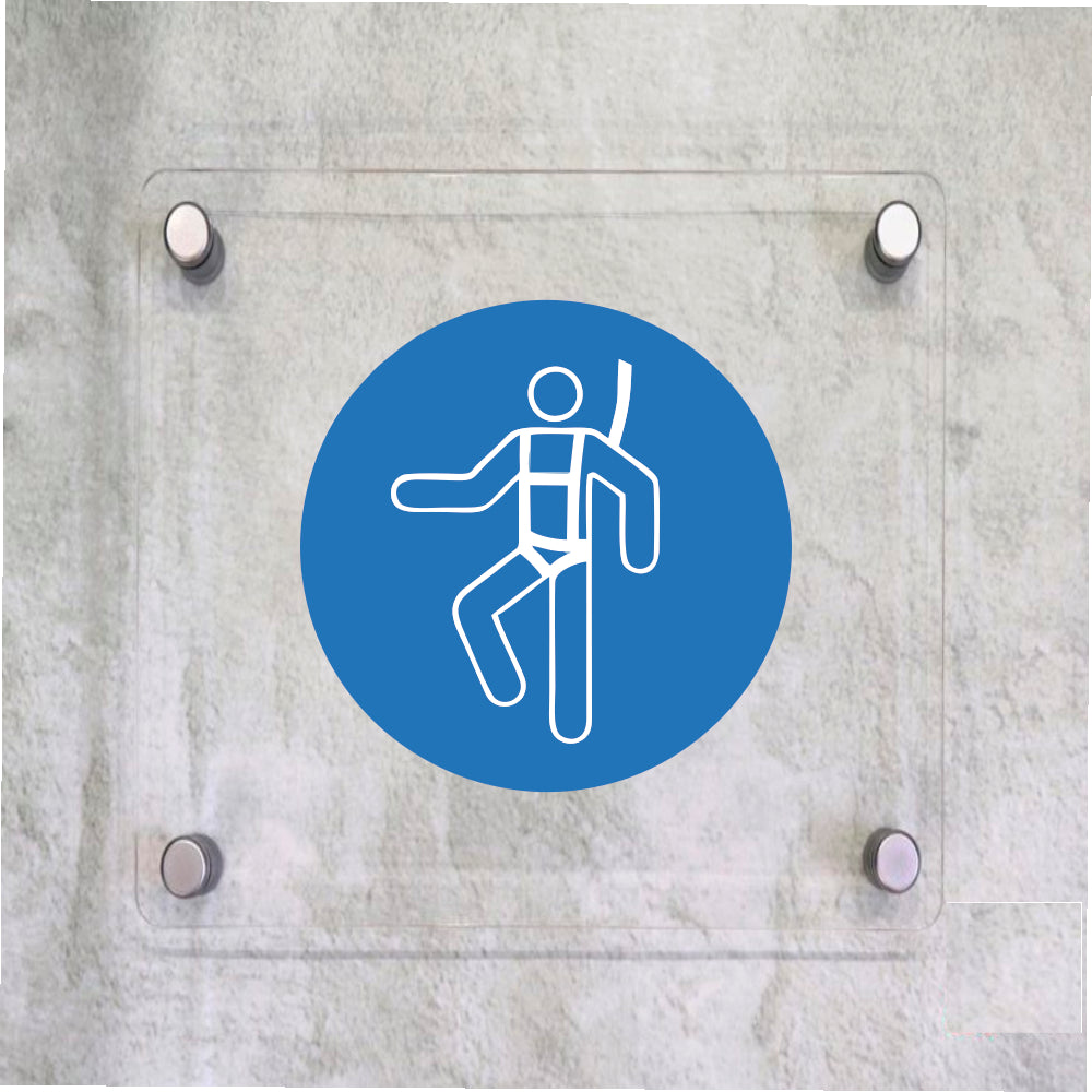 Global Targa Cartello in plexiglass Quadrato - SIMBOLO OBBLIGO USO CINTURA DI SICUREZZA - Con Distanziali in acciaio inox, Stampa UV