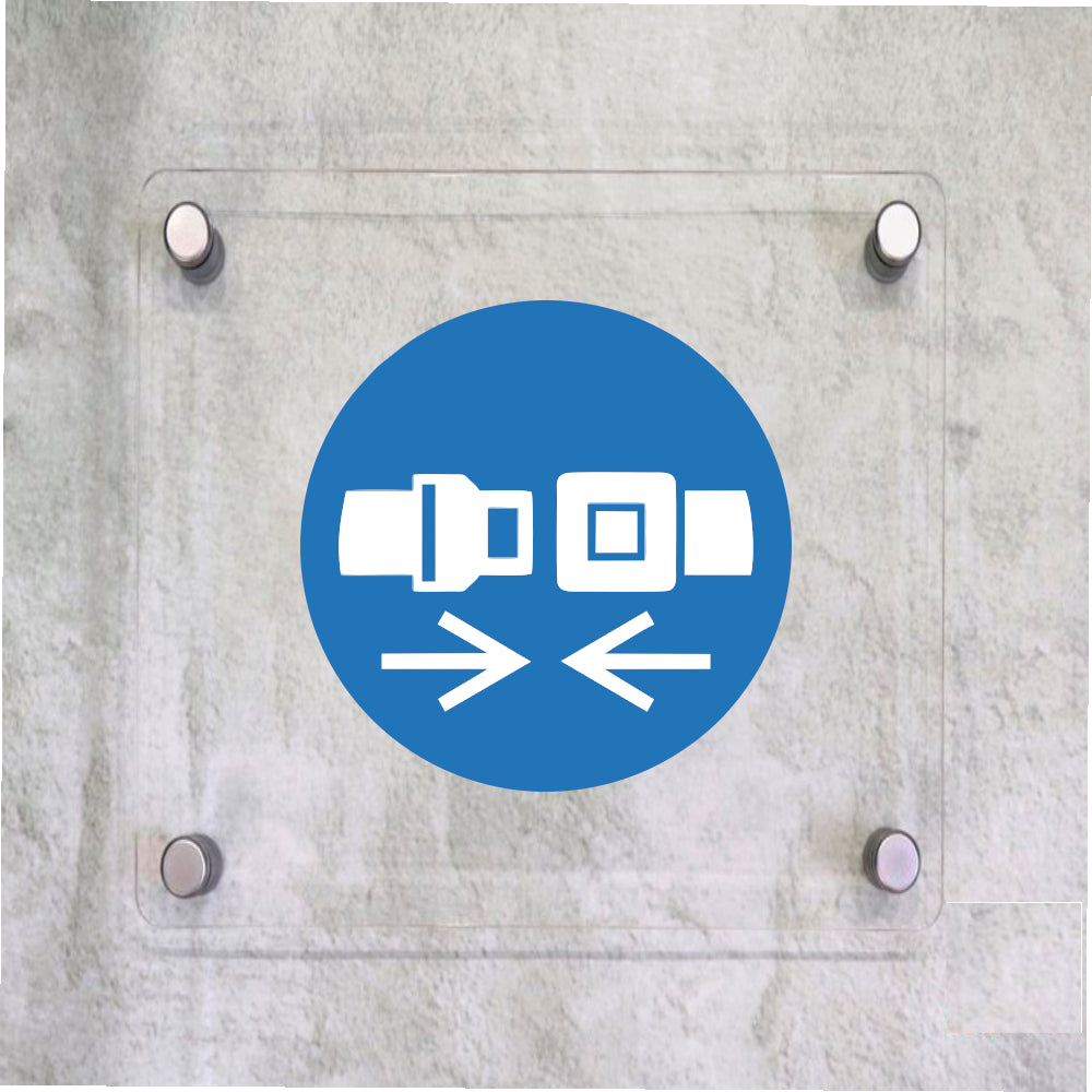 Global Targa Cartello in plexiglass Quadrato - SIMBOLO USO CINTURA DI SICUREZZA - Con Distanziali in acciaio inox, Stampa UV