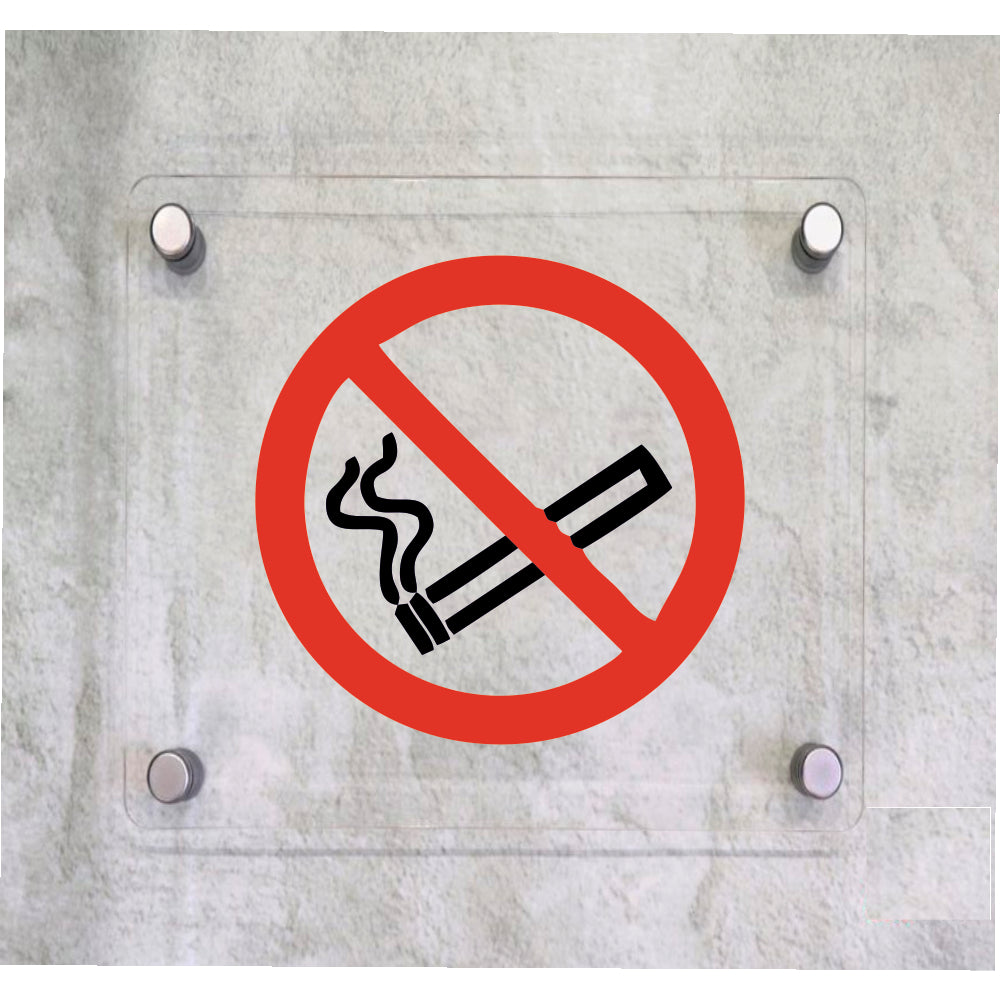 Global Targa Cartello in plexiglass Quadrato - SIMBOLO VIETATO FUMARE - Con Distanziali in acciaio inox, Stampa UV